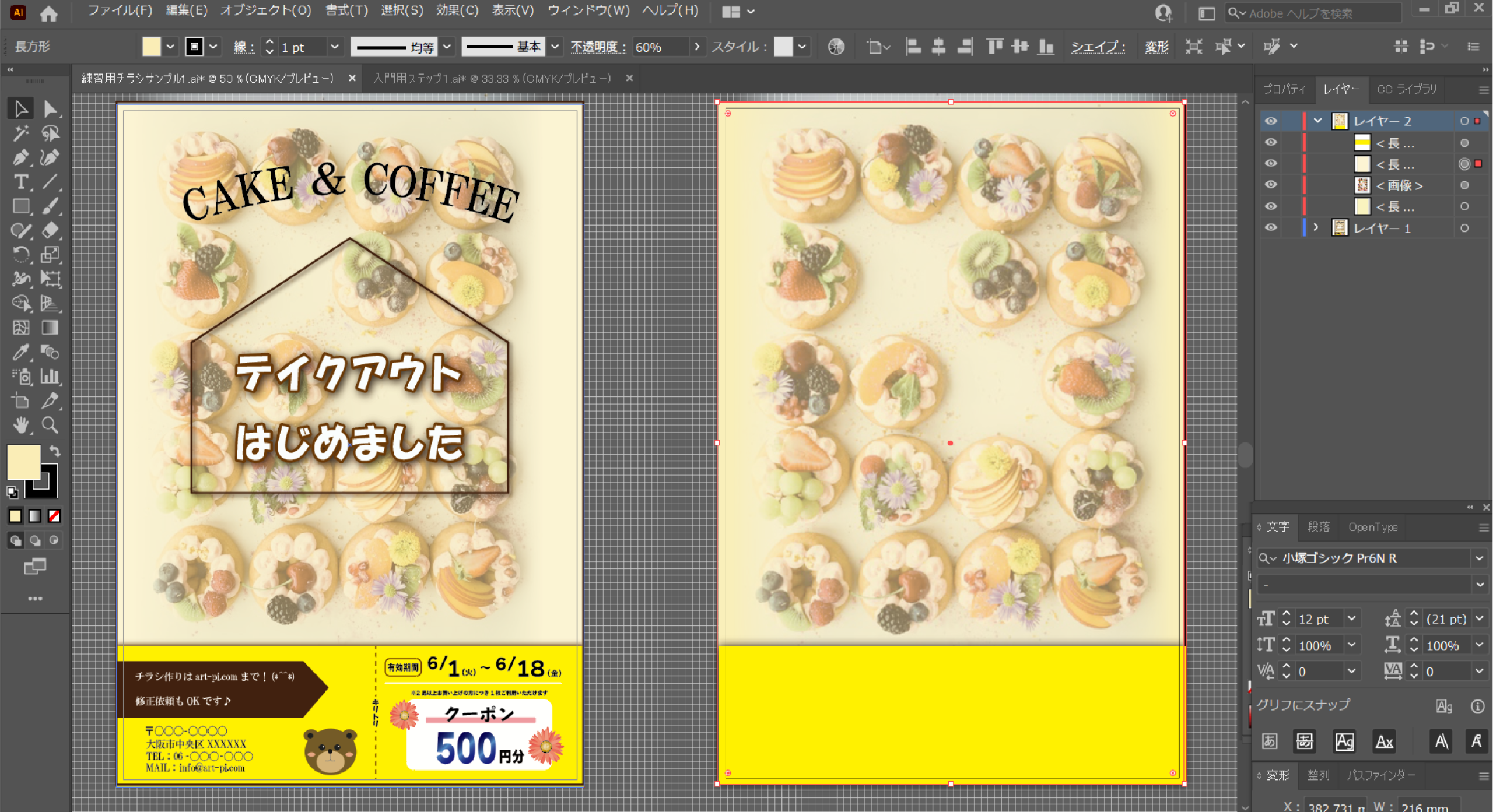 今回も↑のチラシサンプルをゴールに作っていきます♪